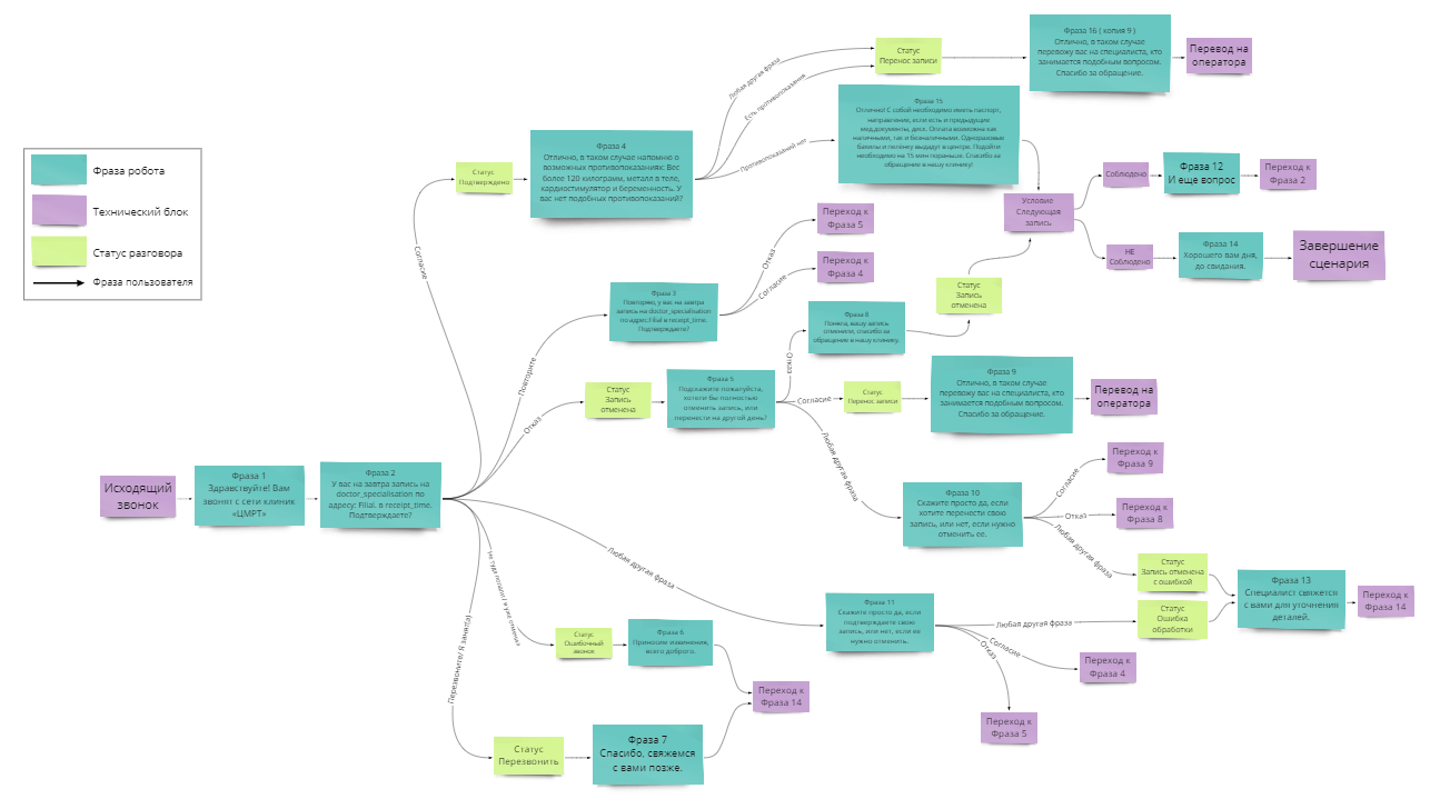 Во время третьего этапа нарисовали схему сценария. После нескольких итераций получилось так: